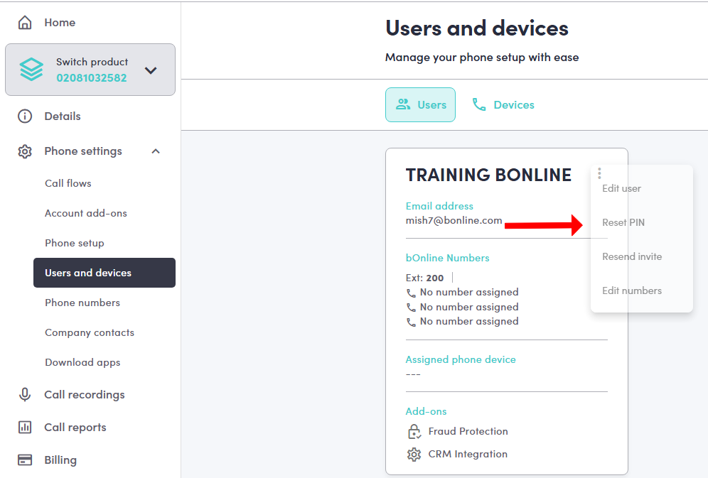 After navigating to the relevant user, select “Reset PIN” and enter a new 6-digit PIN. Then, click “Save”. You can now use this new pin to log in via the mobile or desktop app.