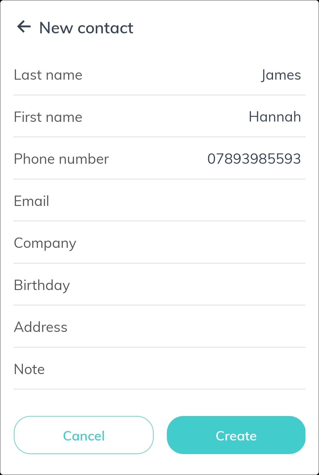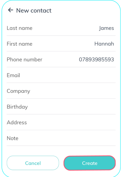 4. Enter the contact details into the relevant fields, such as name and phone number.