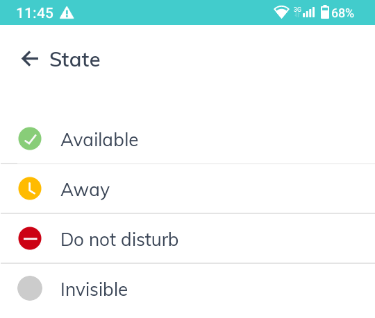 Now, simply pick the state that’s relevant to you: 'Available', 'Away', 'Do Not Disturb', or "Invisible".