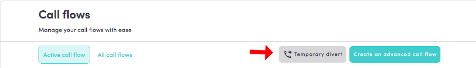 Please note: A temporary call divert 'overrides' any call flow put in place, this means people calling to your business will be diverted to the selected phone number without hearing any welcome greeting or prompts from your business.