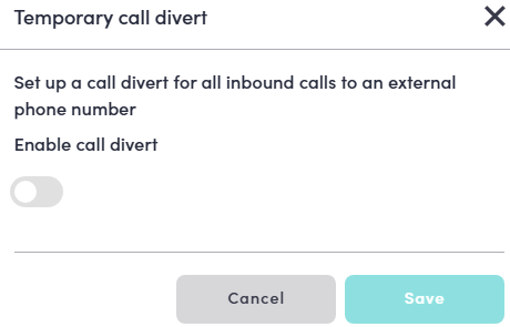 Please note that this feature will set up a call divert for all inbound calls that will be redirected to an external phone number.