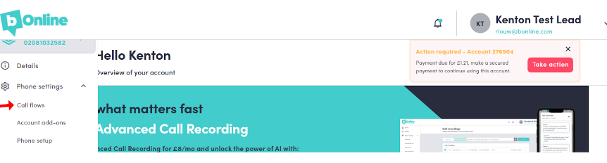 Phone Settings, Call Flows, and then select the Divert option of your choice.