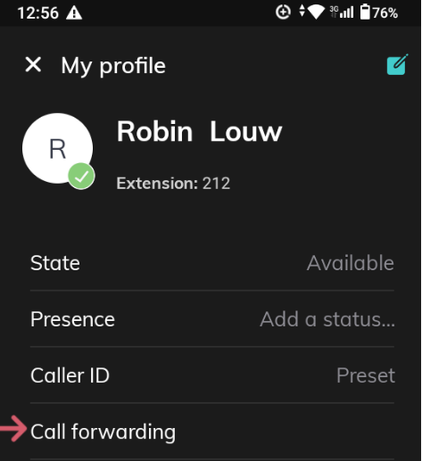 In the mobile app, go to your Profile Icon, Call Forwarding, and then select the option of your choice.