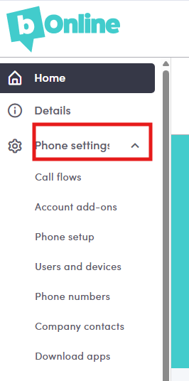 Click Phone Settings in the left-hand menu.