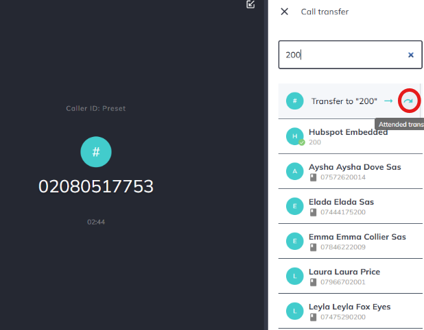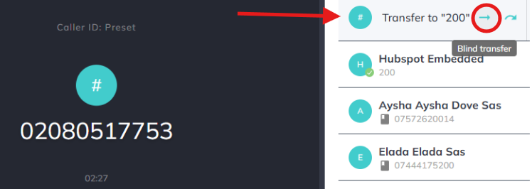 Use the curved arrow to transfer with attended - this allows you to speak to the new caller first before connecting them.