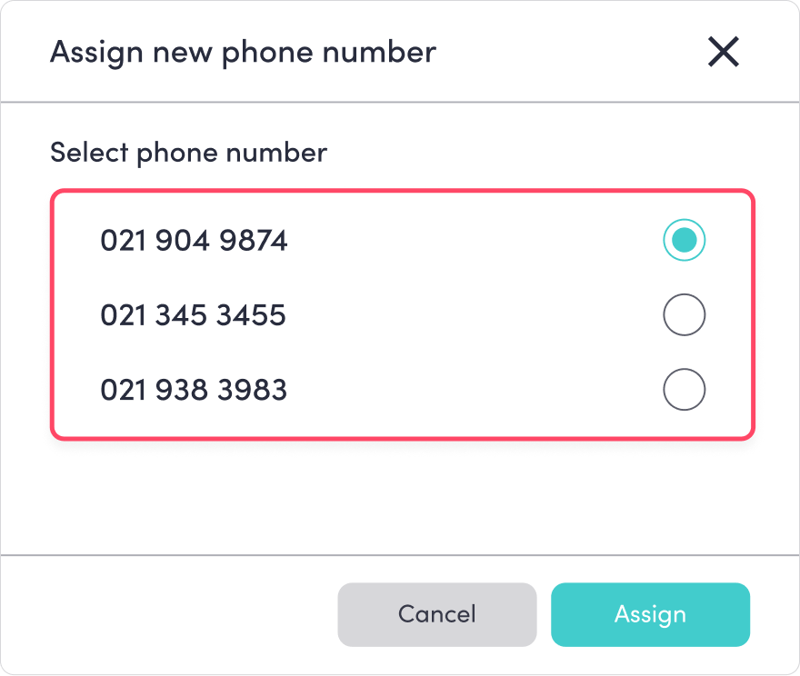 If a number is in use, it must be unassigned first. Once assigned, you’ll see the number appear clearly at the top of the flow.
