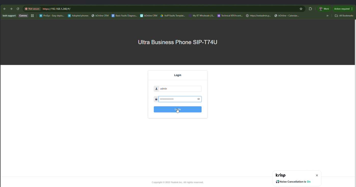 Access Web UI: Open a web browser and enter the phone’s IP address. Log in.