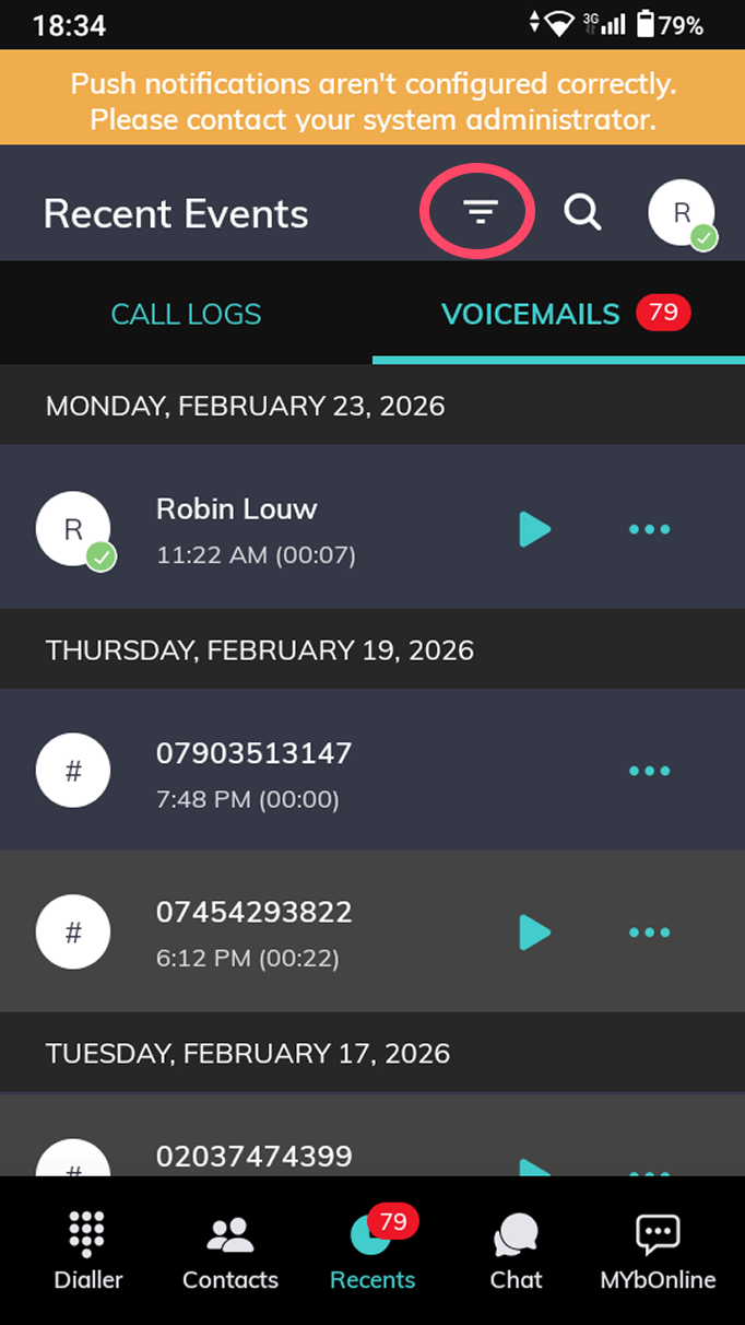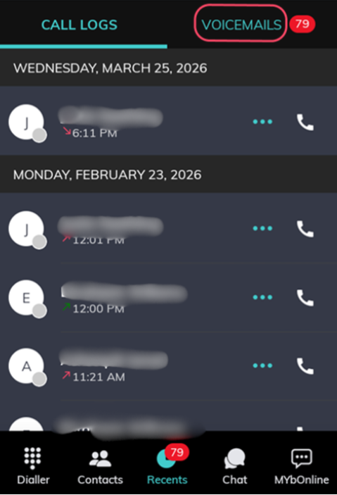Steps to Access Voicemail via the Mobile App