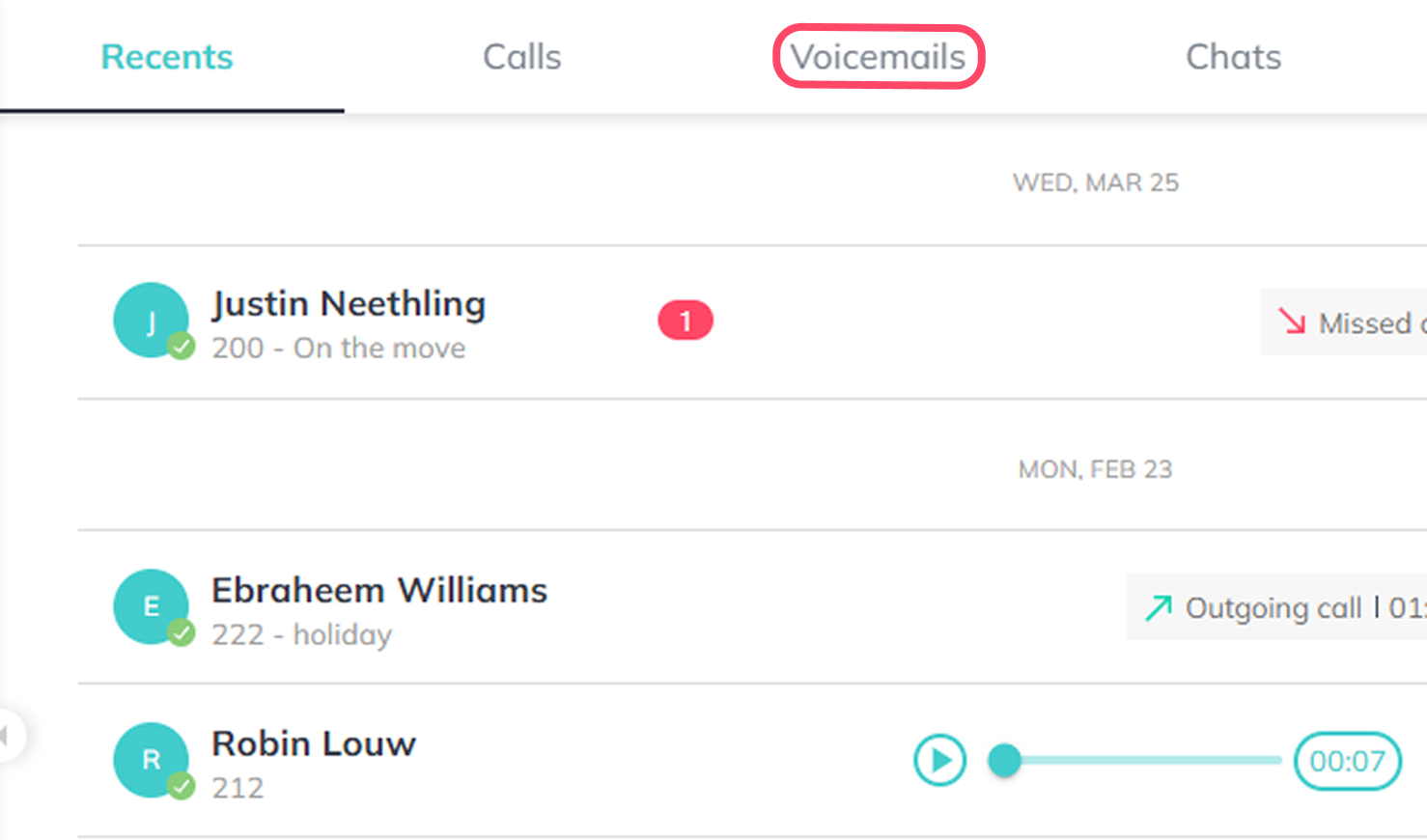 Click on the Voicemail tab at the top right of the screen