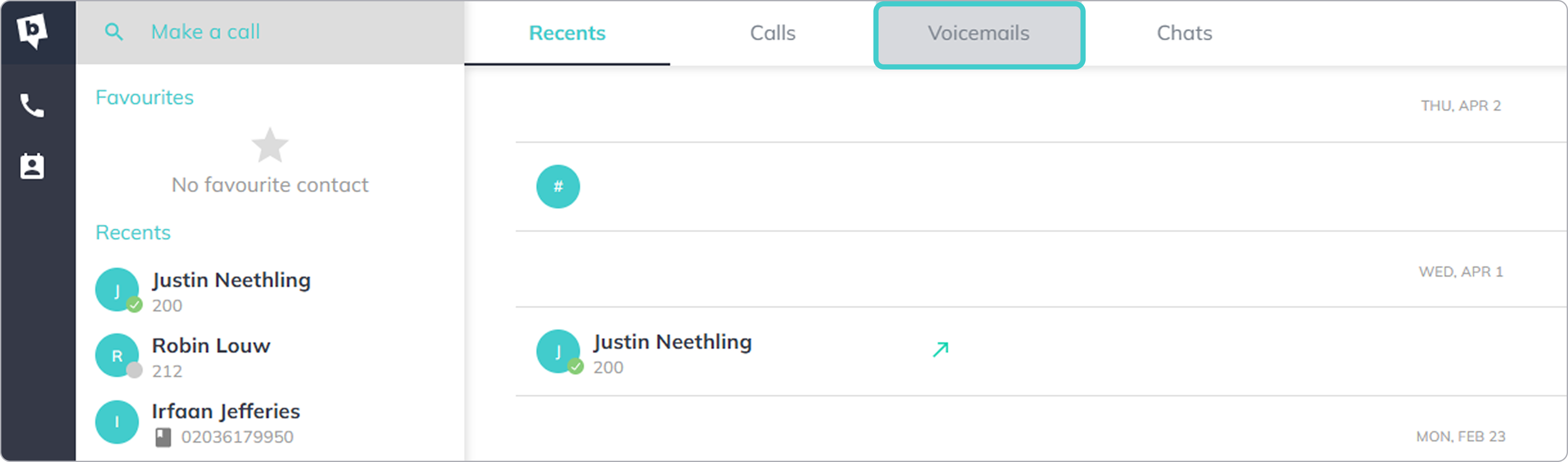- Select the Voicemails tab.