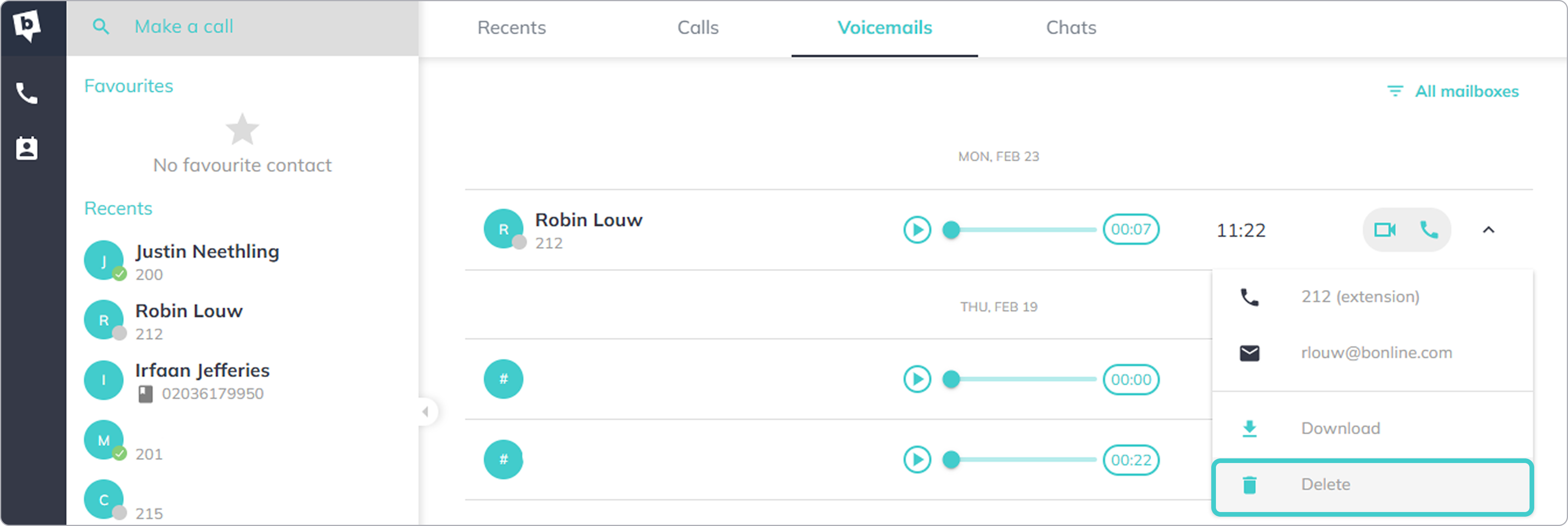 This article explains how to delete voicemail messages in the bOnline desktop app.