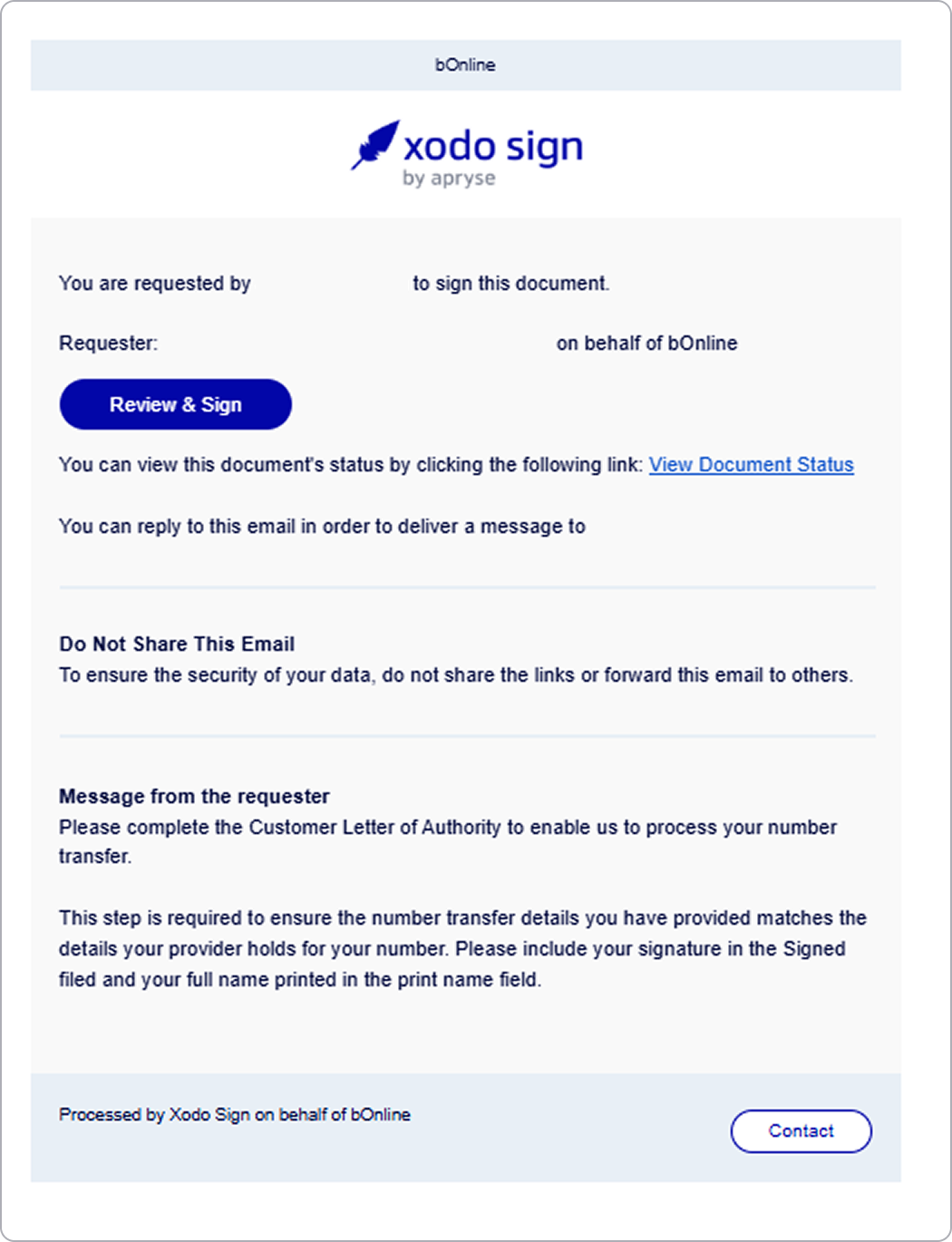 - Authorises transfer: it allows bOnline to move your phone number(s) from your current provider.